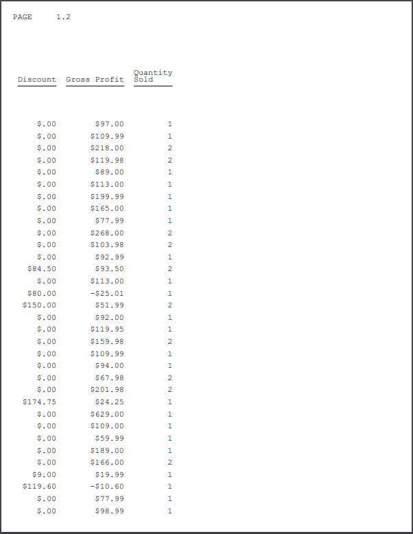 The output is shown in the following image. All of the columns fit across the width of the page, with no paneling.