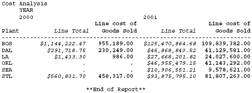 TYPE=SUBTOTAL, BY=PLANT, COLUMN=LINE_COGS, STYLE=BOLD+ITALIC,