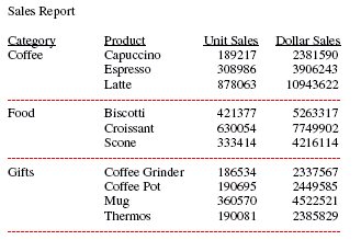 You can make a detailed tabular report easier to read by separating sections with blank lines or underlines.