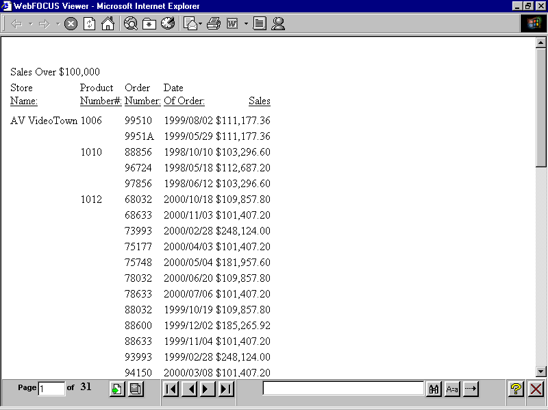 The following is page 1 of a 31-page report displayed in the WebFOCUS Viewer.