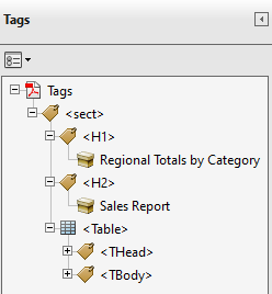 WebFOCUS PDF report output complies with accessibility requirements as a result of the following features:
