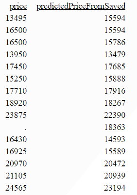 ON TABLE HOLD FORMAT PYTHON MODEL predictedPrice