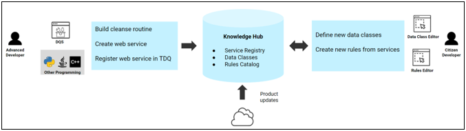 TIBCO DQ has an open Service authoring architecture (i.e., developers have several different options to create new Services):