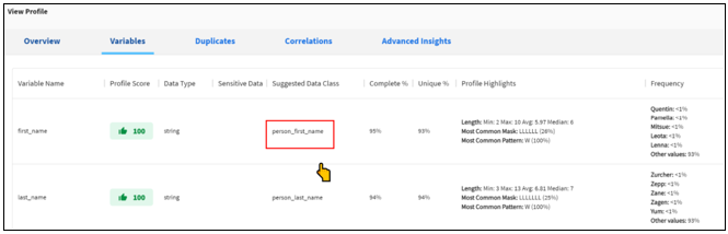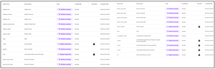 A data class represents a real-world entity (for example Credit Card, Email, Phone Number, etc.). When a user uploads a data set and submits a request for data profiling, the Profiler uses the definitions of known data classes from the Knowledge Hub to classify and tag those data variables with their corresponding data classes.