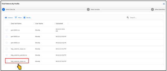 Use this option when you have generated a data profile and want to use the patterns and masks discovered by the profiler to define a new data class. The following steps apply to patterns and masks: