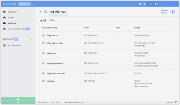 A list of containers in the tdq_tdq-logs is displayed, as shown in the following image.