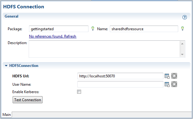 The HDFS Connection shared resource is available at the