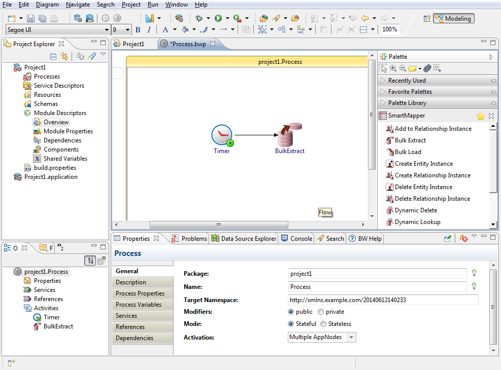 Processes define the business logic. Once a project is created, you need to configure the process by adding activities, conditions, and services.