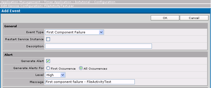 In addition to tracing, TIBCO Administrator allows you to specify that you wish to be alerted if certain conditions are met. This section gives one example. A detailed discussion of tracing is included in Adding a Rulebase to a Process or Service.