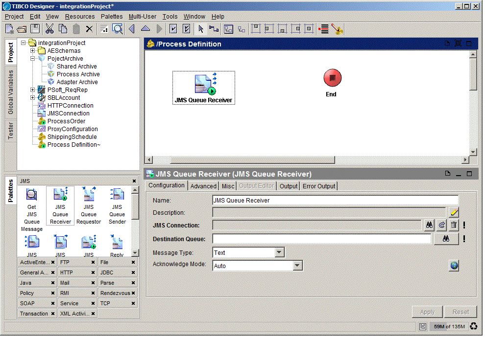 In our example, the JMS Queue Receiver is the process starter.Figure 21 Adding a process starterNote that the default Start activity that is included with each process you instantiate is not a process starter. A Start activity must be called explicitly from another process.