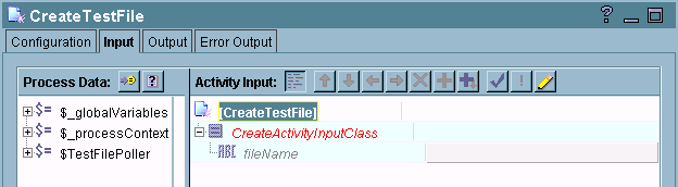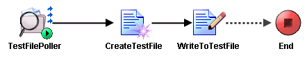 This section guides you through creating a simple process definition. The process, which will be named FileTest, polls a directory for a specified file and writes a new file to the same directory each time the file changes. The new file’s name includes the type of change that occurred to the original file (create, modify, or remove). The new file’s content is the same as the polled file’s content, but the time of the change in the file is appended to the end of the file. The time of the file change is represented as the number of milliseconds since January 1, 1970.
