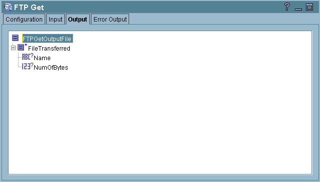 Output The output tab displays the activity output schema. This name appears in subsequent activities input tabs. The activity output data is displayed for informational purposes only and cannot be modified or altered. The following illustrates the output tab.