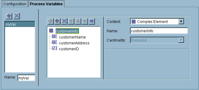 Only global variables that have the Deployment option checked (on the advanced editor dialog) are visible in the $_globalVariables process variable. Also, only global variables with well-formed XML names (for example, names containing a % are not well-formed) appear in the $_globalVariables process variable. However, global variables of the type ’Password’ are not listed under the $_globalVariables process variable.When an error occurs in a process, the data pertaining to the error is placed into process variables. The $_error process variable contains general error information. Activities can also have error process variables named $_error_<activityName>. In the event of an error, the activity’s error variable is populated with the appropriate error schema.See Chapter 10, Error Handling for more information about handling errors and error process variables.You can define your own process variables and assign values to them in your process definition. Process variables are defined on the Process Variables tab of the Process Definition resource. You create a process variable in the same way you create data schemas for activities. See Editor for more information about creating data schemas.Figure 23 illustrates creating a process variable. You add a process variable and give it a name in the left-most panel, then you create its schema in the middle panel.Figure 23 Creating a process variableTo assign a value to a user-defined process variable, use the Assign activity. Assign allows you to specify which process variable you wish to modify. Only user-defined process variables can be modified. You can then specify a new value for the process variable in the Input tab of the Assign activity. Figure 24 illustrates assigning a value to a user-defined process variable.See TIBCO ActiveMatrix BusinessWorks Palette Reference for more information about the Assign activity.Memory saving mode can reduce the memory used by actively running process instances, as well as potentially improve the performance of checkpoints. By default, memory saving mode is disabled, but you can enable memory saving mode for specific process instances by setting the EnableMemorySavingMode.<processname> property to true. You can enable memory saving mode for all process instances by setting the EnableMemorySavingMode property to true.See TIBCO ActiveMatrix BusinessWorks Administration for more information about setting properties.