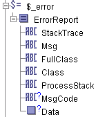 The $_error process variable contains general information about the process in which the error occurred. The schema of the