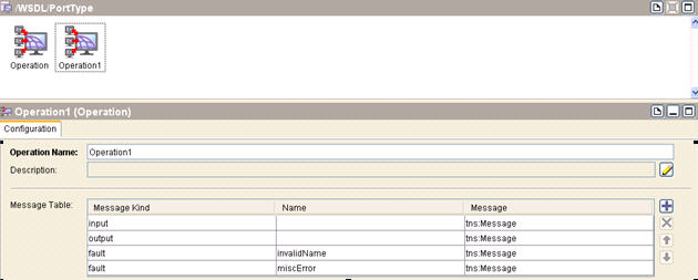 1. Click "Operation1" to go to the Advanced tab of the Service Resource.Both the Faults available for that operation are listed in the soapFaults drop-down as shown in Figure 51. Configure the fault message for any of the selected fault. Select the fault header name and Partname of the selected fault same as the Output Headers.Figure 51 SOAPFault MessagesThe way headers are configured in Headers for Declared Faults, define the Context Resource that can be used to map user inputs to the configured headers.