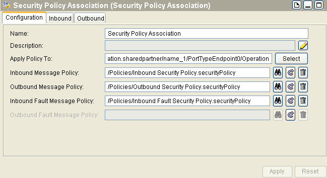 • Inbound Fault Message Policy - for applying security policy to the fault messages being received.