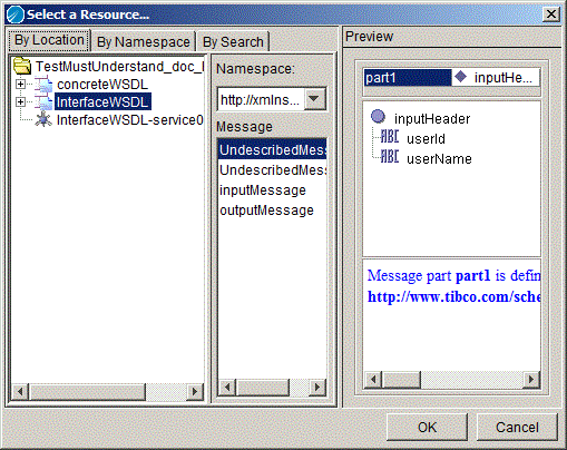 1. Click Input Headers tab. This will show a table with Message name and Part name. Use the + and X buttons to add or delete message in the table. Move the messages up or down the list using the arrow buttons.
