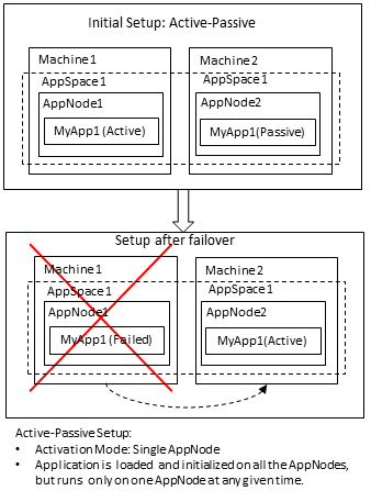 A component in an active state is loaded, initialized, and enabled to process new events. A component in a passive state is loaded, initialized. However it is not enabled to process new events instead, it is in a stand-by mode. When a component is active in multiple AppNodes, it is considered to be Active-Active. And when a component is active in a single AppNode and passive in other AppNodes, it is considered to be Active-Passive.