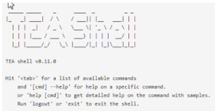 On successful connection, the TEA Shell banner is displayed, illustrated below: