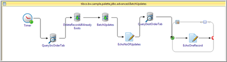 - JDBC Update - Batch Updates: This activity is configured to perform multiple statements in one batch. It uses the BatchUpdates process.