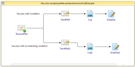 - In the samples directory, select and double-click tibco.bw.sample.palette.mail.SendAndReceive. For more information, see Accessing Samples.