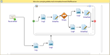 - In the samples directory, select and double-click tibco.bw.sample.palette.mail.MIMEAttachment. For more information, see Accessing Samples.