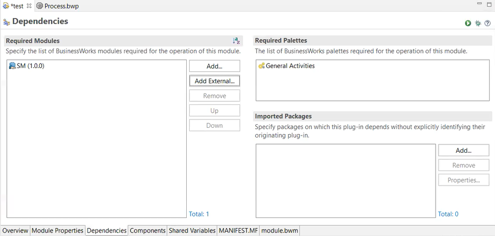 The binary shared module is imported and it is listed under the Required Modules tab.