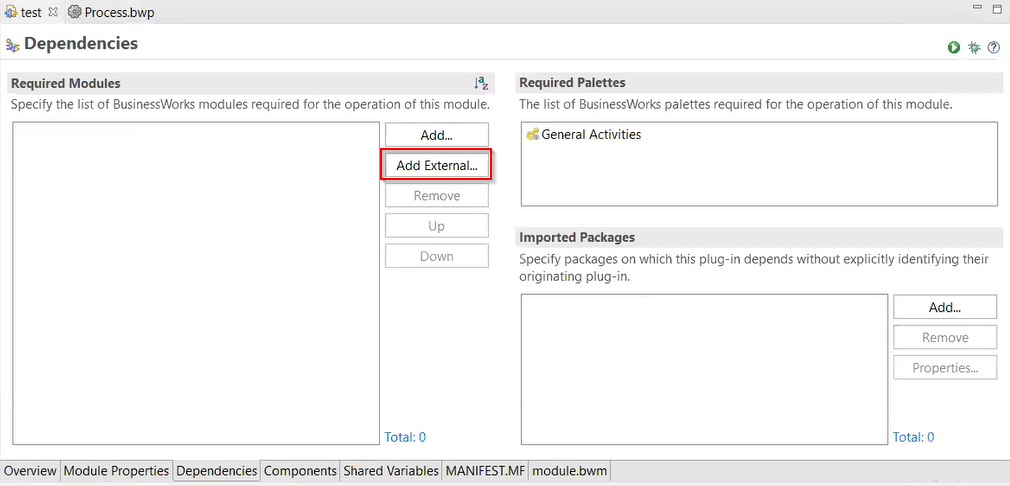 - Click Save. The binary shared module is displayed on the Project Explorer tab.