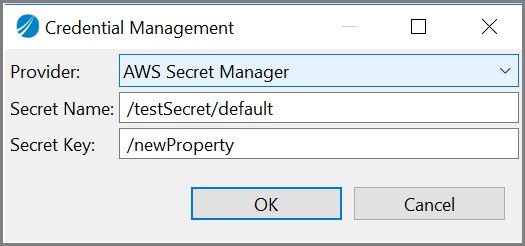 The AWS Secret Manager has two fields, Secret Name and Secret Key. In the Secret Name and Secret Key fields, add the secret name and secret key that is to be retrieved from the AWS Secret Manager.
