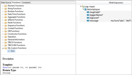- After including the Custom XPath Function Plug in in the application project, test it in the Debugger and then, export it as an EAR, and deploy at runtime.