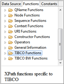 You can also use the Custom XPath Function Wizard to create your custom XPath function group. For more information, see Creating Custom XPath Functions in the TIBCO BusinessWorks™ Container Edition Bindings and Palettes Reference.