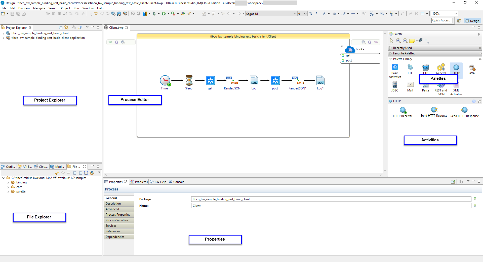 TIBCO Business Studio for BusinessWorks provides Eclipse extensions such as editors, palettes, and so on.