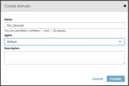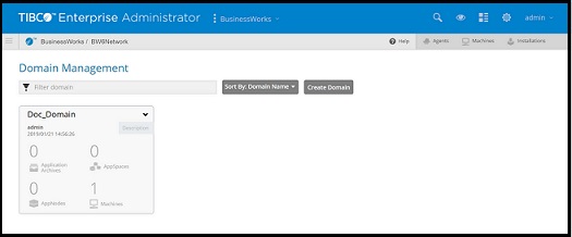 A domain comprises AppSpaces and AppNodes. Create a domain first, and then add the AppSpaces and AppNodes to the domain. The domain name is applied to all contained entities.