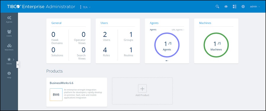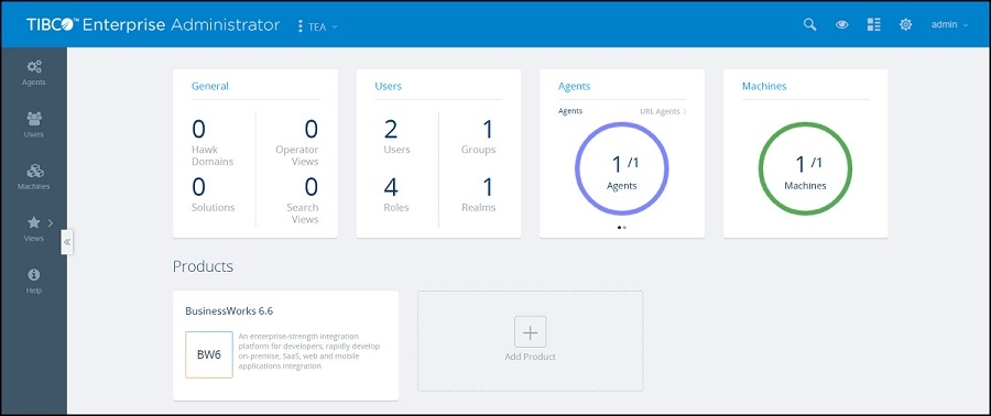 - Click the BusinessWorks product icon on the Admin UI home page.