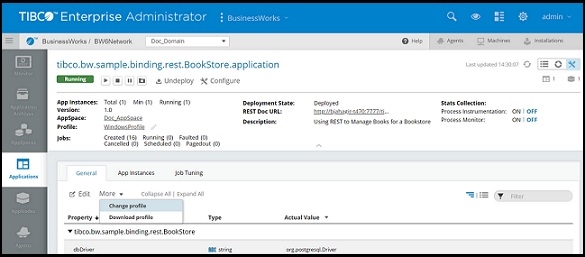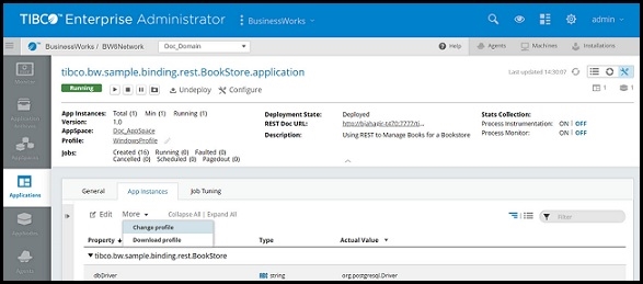 From the Admin UI you can change the profile for all instances of the application, or for a single application instance.