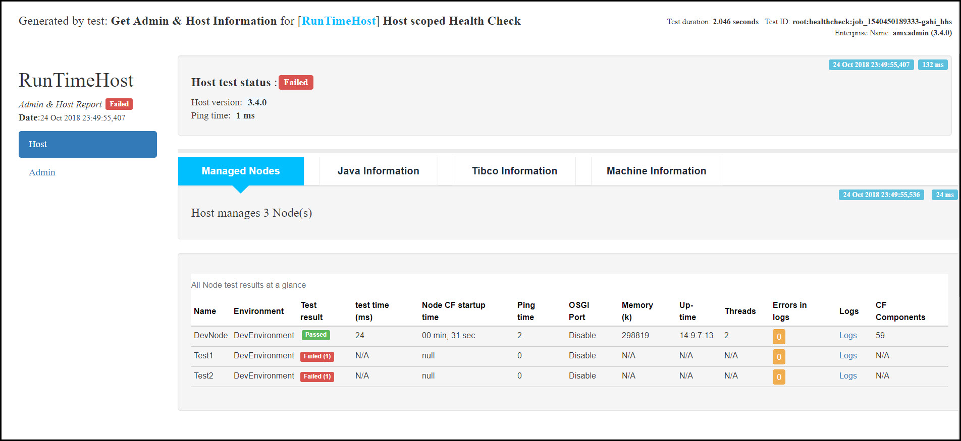 - Test Deploy: Test Deploy for all the nodes managed by the selected host ( Deploy a sample application and then undeploy it).