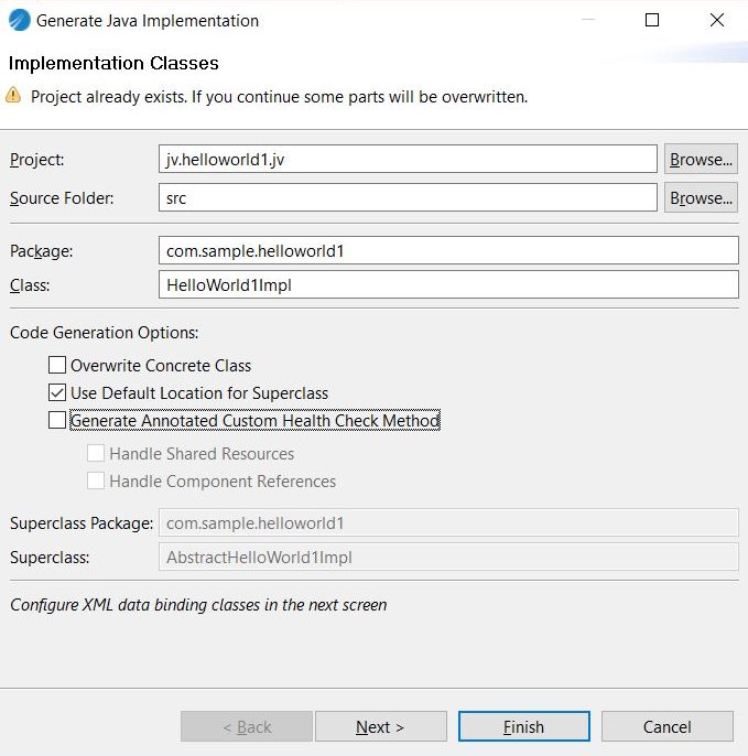 - Right-click and select Generate Java Implementation. The following screen is displayed: