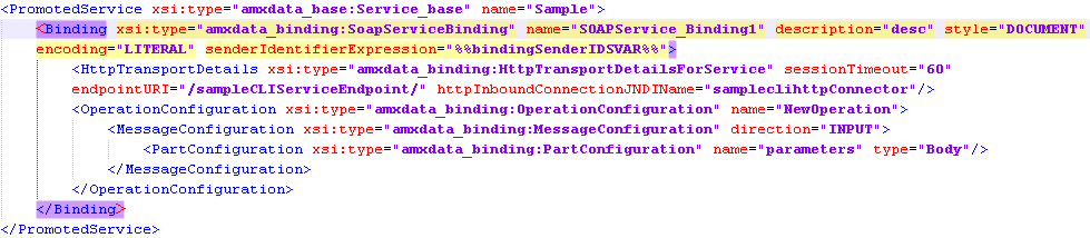 When editing an existing SOAP Service Binding using the TIBCO ActiveMatrix Administrator CLI, the complete Binding configuration must be specified, that is, all the fields must be included as part of the Binding Descriptor.