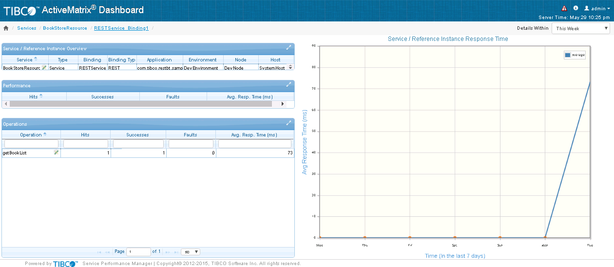 Average Response Time (ms) Shows the average response time on the selected service instance in milliseconds
