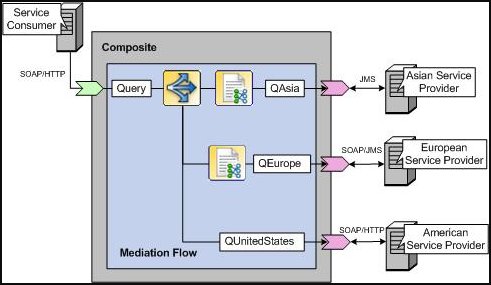 - Transport bridging A composite application containing one or more mediation components can provide a bridge between service consumers and service providers that use different transport protocols.