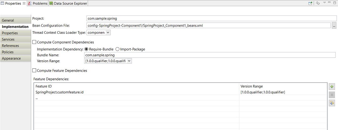 When a component implementation is dependent on a shared library, the feature containing the dependency must be specified in the component's Feature Dependencies table.