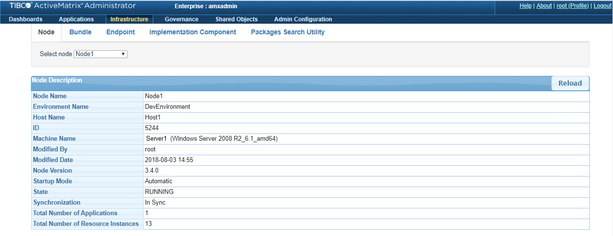 | Synchronization | Indicates whether the Node’s runtime matches the Node's configuration in the ActiveMatrix Administrator database |