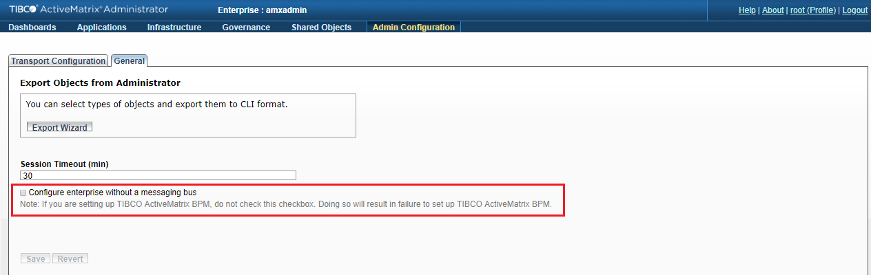 Configure enterprise without a messaging bus check box to stop the enterprise from using a messaging bus.