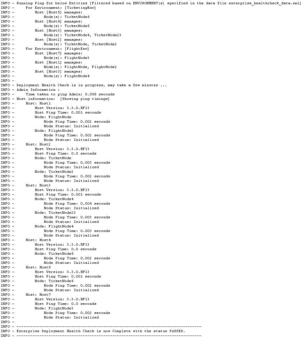 The names of the Environments used for this Enterprise Deployment Health Check execution are input from the enterprise_healthcheck_data.xml (see the following snippet):