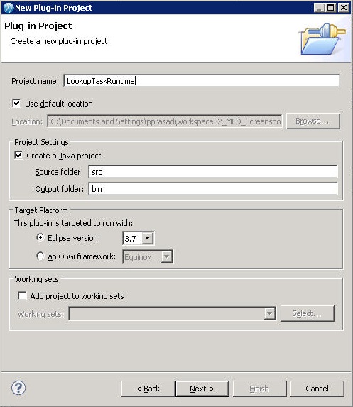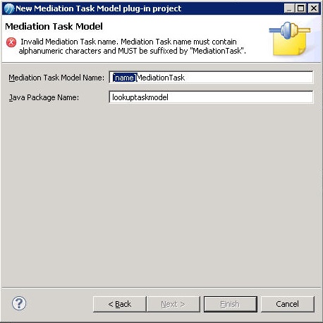 - Specify a name for the project that reflects the mediation task name and that identifies this as the model plug-in. For example, type LookupTaskModel.