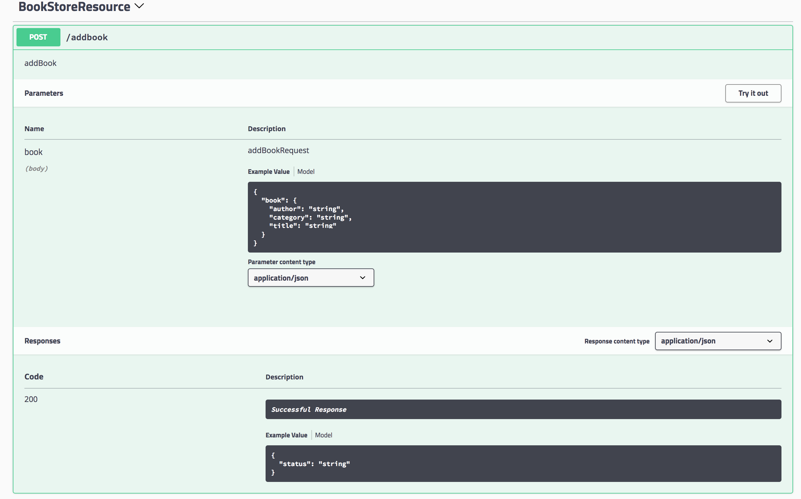 2. In the Example Value field, change the values. In the BookStore example, you could change the author, category, or title.