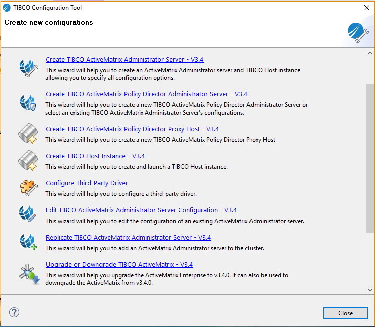 - Navigate to TIBCO_HOME/tct/1.6 and start the TCT wizard by running the TIBCOConfigurationTool.exe.