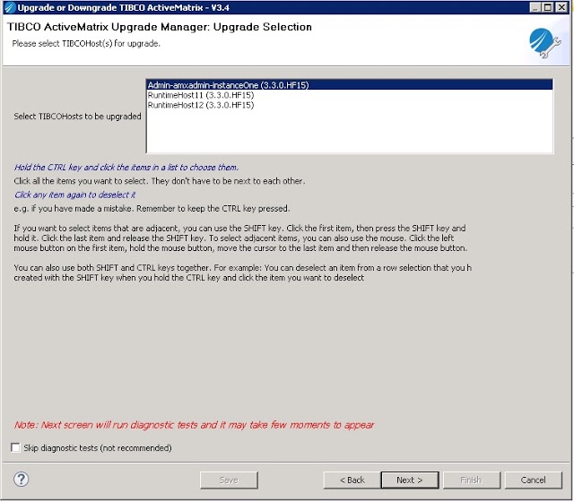 TIBCOHosts to be upgraded to select specific Hosts for upgrading or select