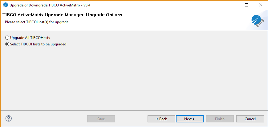 Select TIBCOHosts to be upgraded option and click