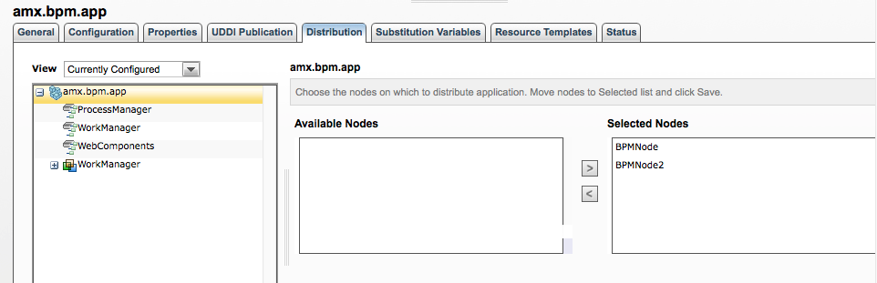 In Figure 2, the newly added BPM Node is shown as the part of amx.bpm.app Application's redistribution.